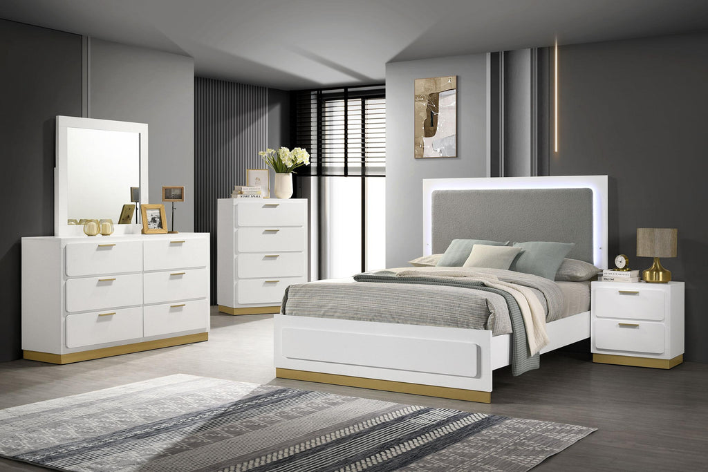 Modern luxury with a minimalist look offers a perfect fit for updated bedrooms as the six-drawer enhances a sleek master suite or guest bedroom. Wood and wood products construct a dresser with clean lines and a stylish Mid-Century Modern vibe. This dresser offers simplicity with sleek elegance, as accents include straight drawer handles and a matching base. Spacious drawers operate smoothly on center drawer glides. Choose this dresser for its versatility and convenience, accompanying either matching or coordinating pieces to pull a statement-making look together.
