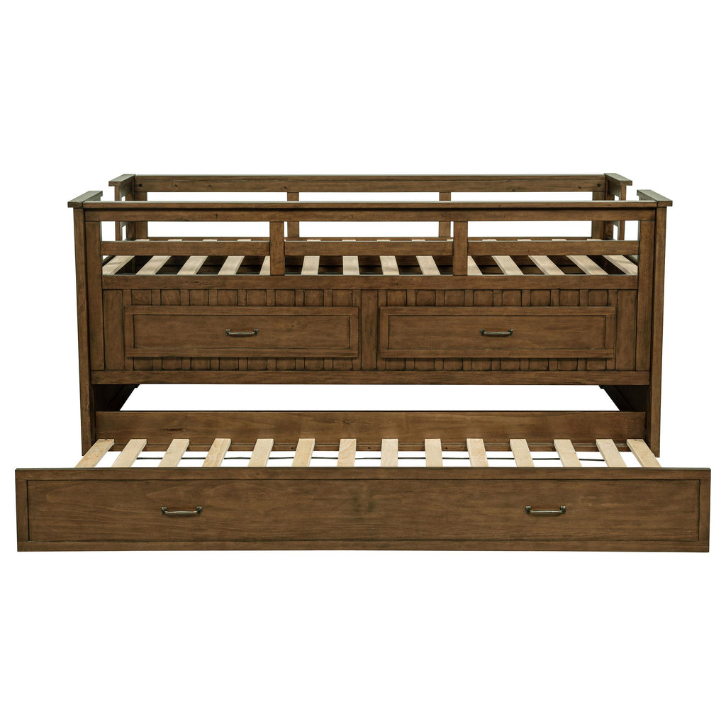 This captain's bed delivers a practical and stylish solution for children's rooms or compact spaces. Crafted from pine wood, plywood, and MDF, it features guardrails for added safety, a built-in ladder for easy access, and a bold finish that enhances its modern look. Two spacious drawers with smooth-gliding tracks keep essentials within easy reach, while the included slat kit ensures a durable, mattress-ready frame without the need for a box spring. Designed to maximize both style and functionality, this bed is perfect for versatile living.